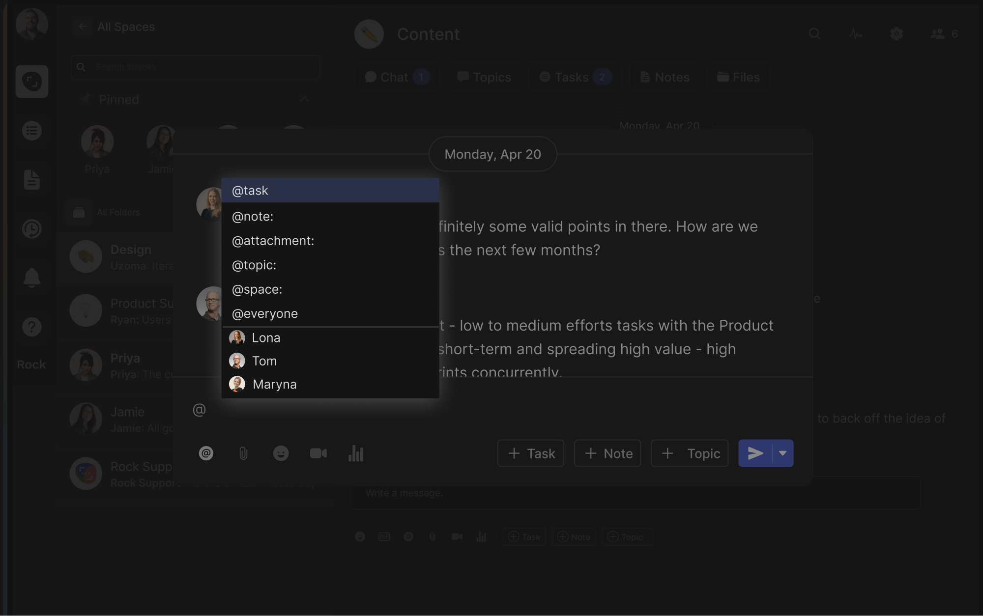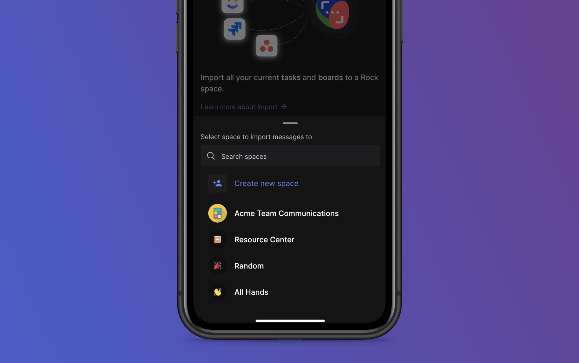 Several tools and software solutions can enhance your project management experience when using templates. Rock is an all-in-one platform that simplifies project management by integrating messaging, tasks, and all your favorite apps in one space. With Rock, you can efficiently manage projects with unlimited members and tasks, keeping everything organized and accessible in one place. It comes with different views to see all your project tasks – from a list view to a board view. The great thing about Rock is that you don't need to deal with the hassle of per-user pricing.