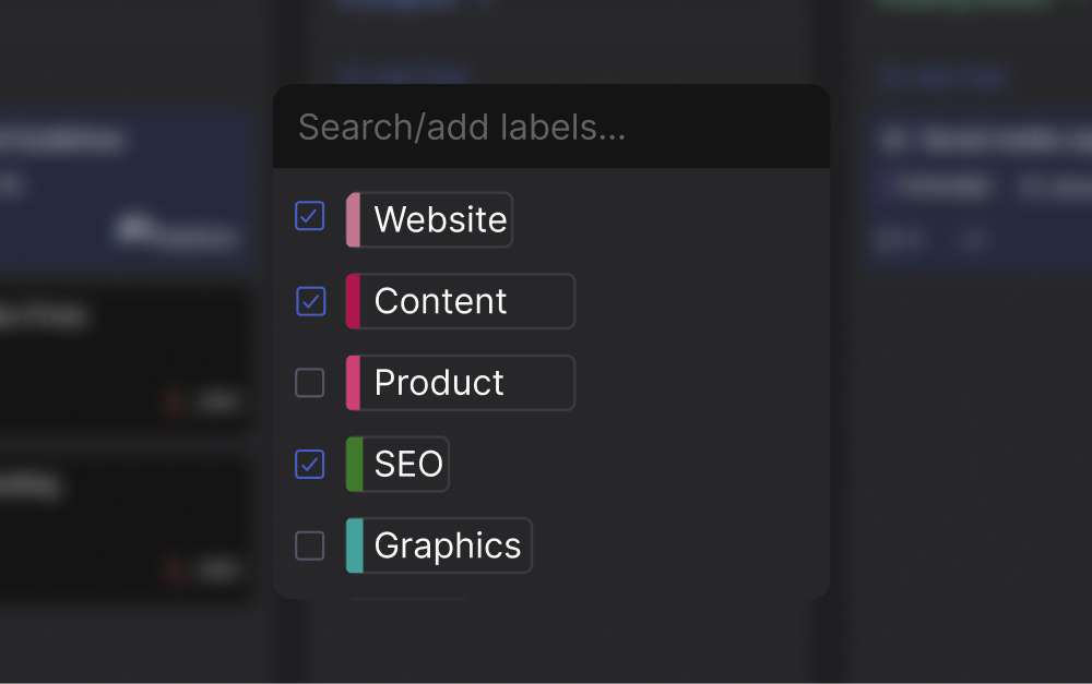 These tasks could take time away from team collaboration. In Rock, you can use labels that align with goals and priorities on every task. This way, you know people are staying organized at work and spending time on tasks that will make an impact.