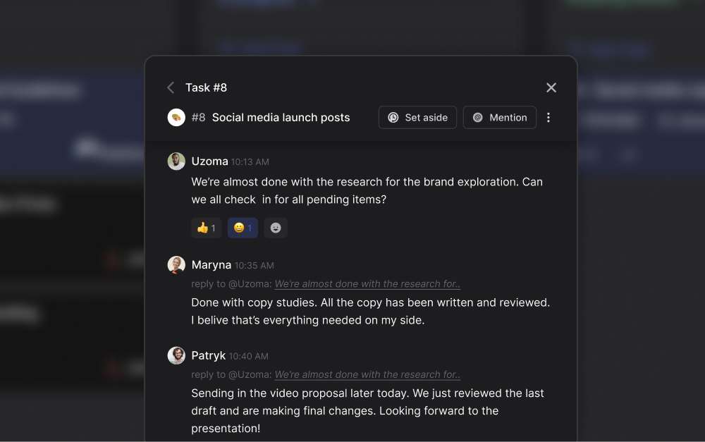 - Use task management functionality to assign work more efficiently. This way, you can inform everyone what they'll be working on, thus avoiding confusion.