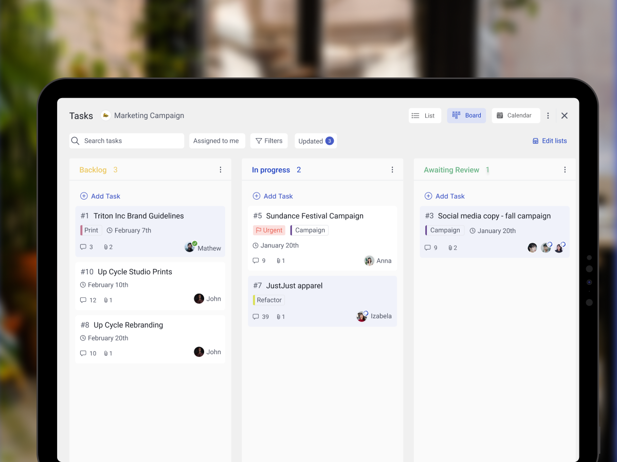 Synchronous communication, like meetings, calls, or messaging, is real-time. Asynchronous communication, like task boards, lets someone respond when it’s convenient for them. With a tool that gives you both communication styles, you can focus on work without worrying that you’re out of the loop.