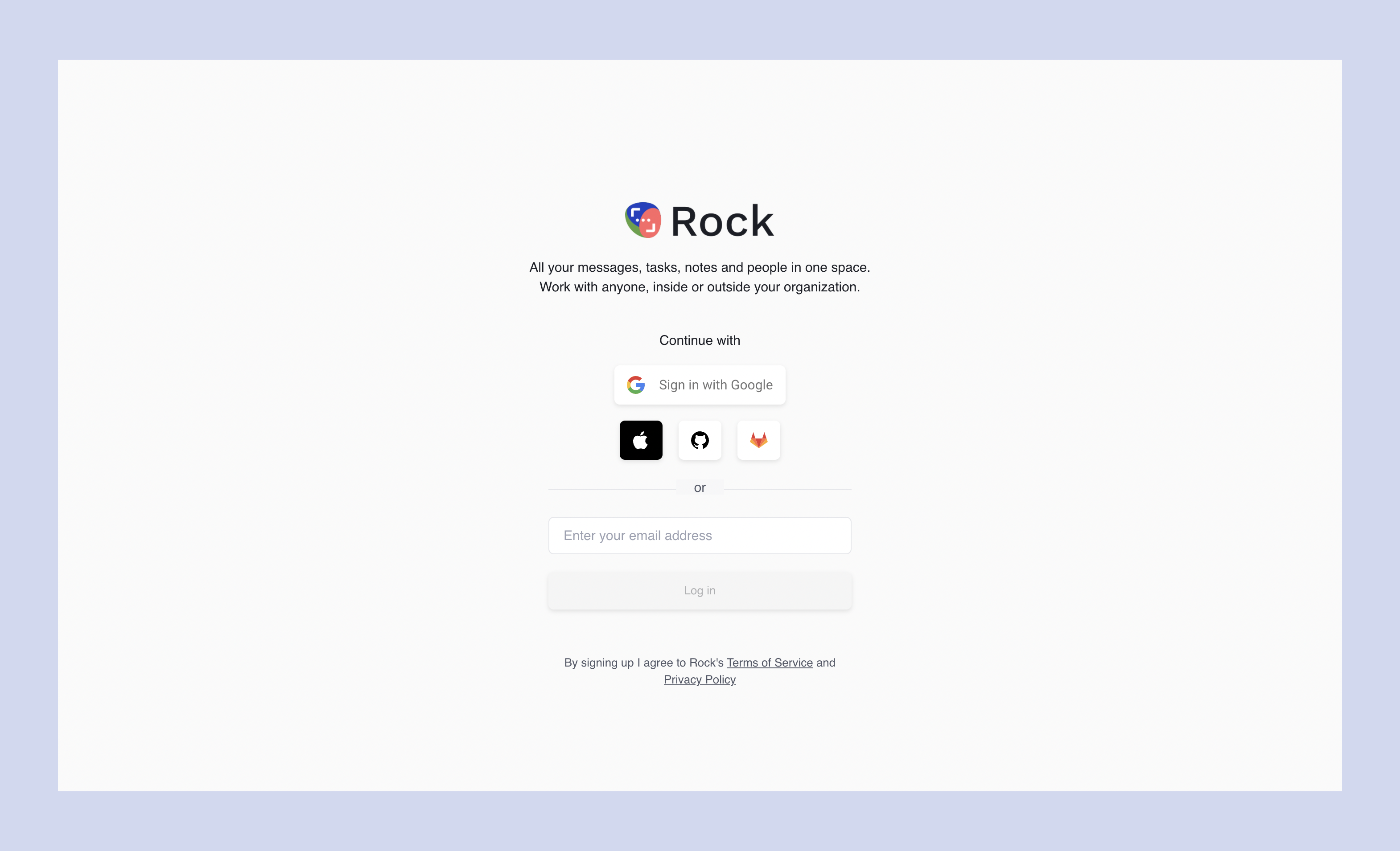 Create an account and access Rock from more third party applications. We have added Apple, Github and Gitlab in addition to the already existing Sign in with Google option. This should make it easier to make an account on Rock and log in faster when re-entering or logging in from a new device.Fear not if your current provider is not in the list, we are planning on adding Facebook and Microsoft very soon.