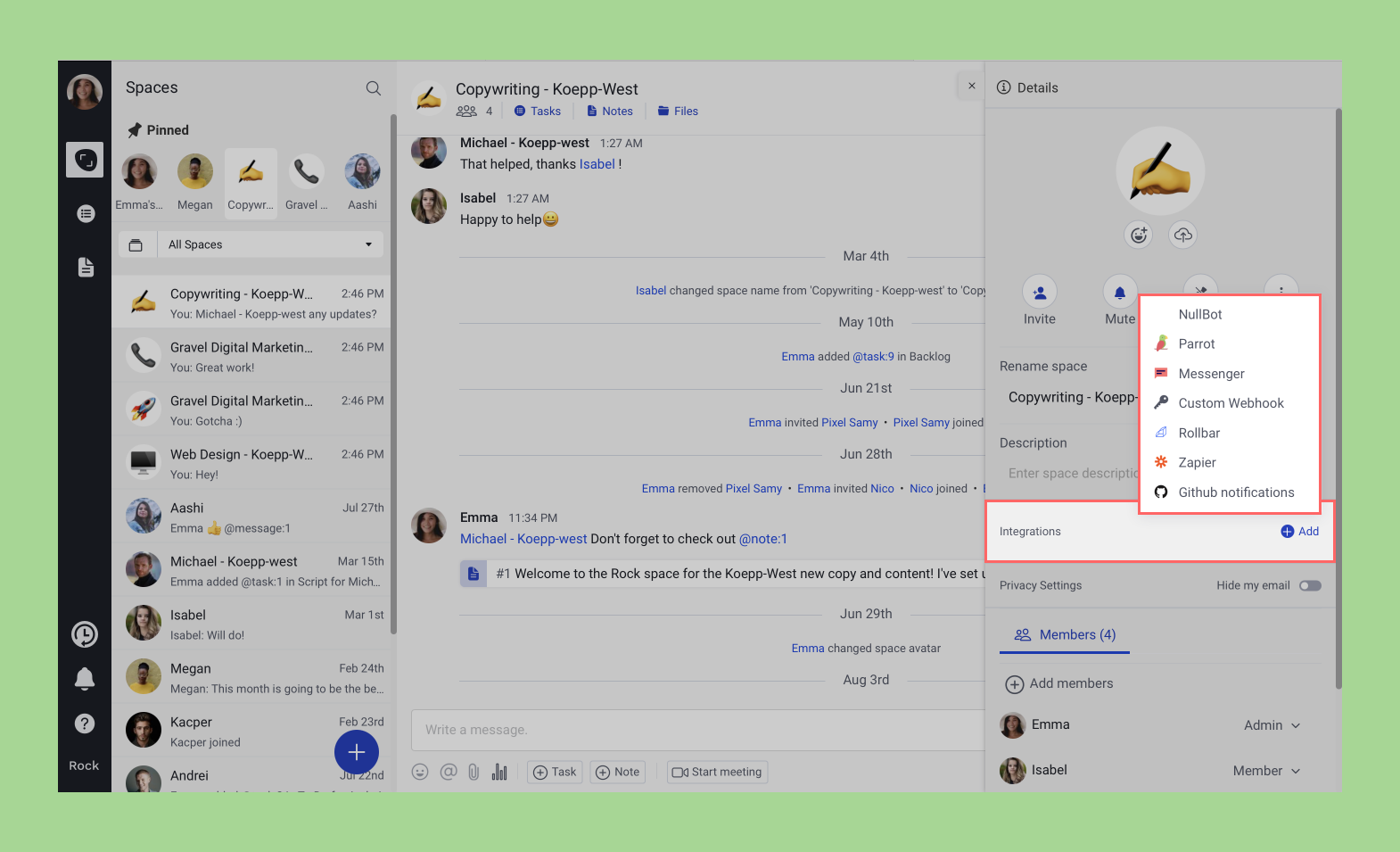 Rock Bots, Integrations, and Webhooks [PRO Space Feature]