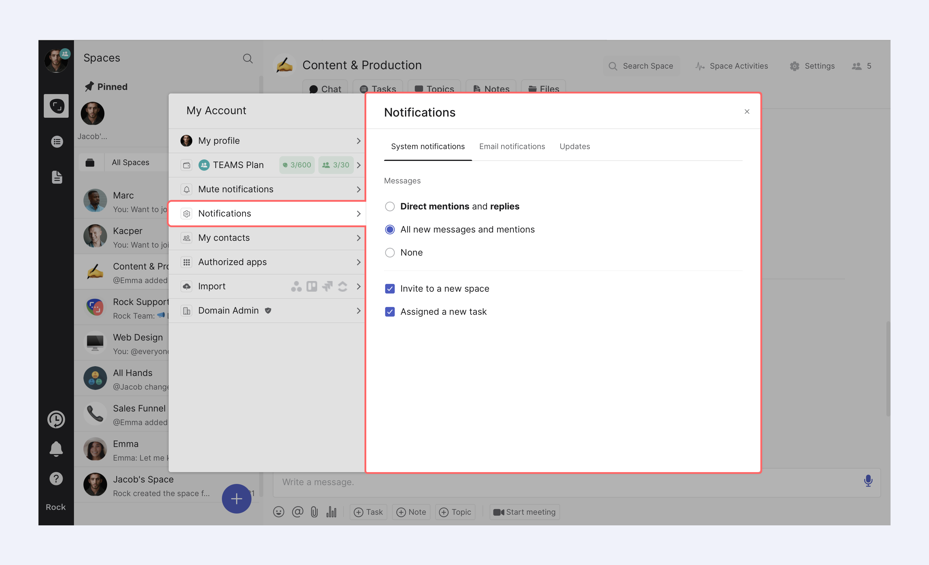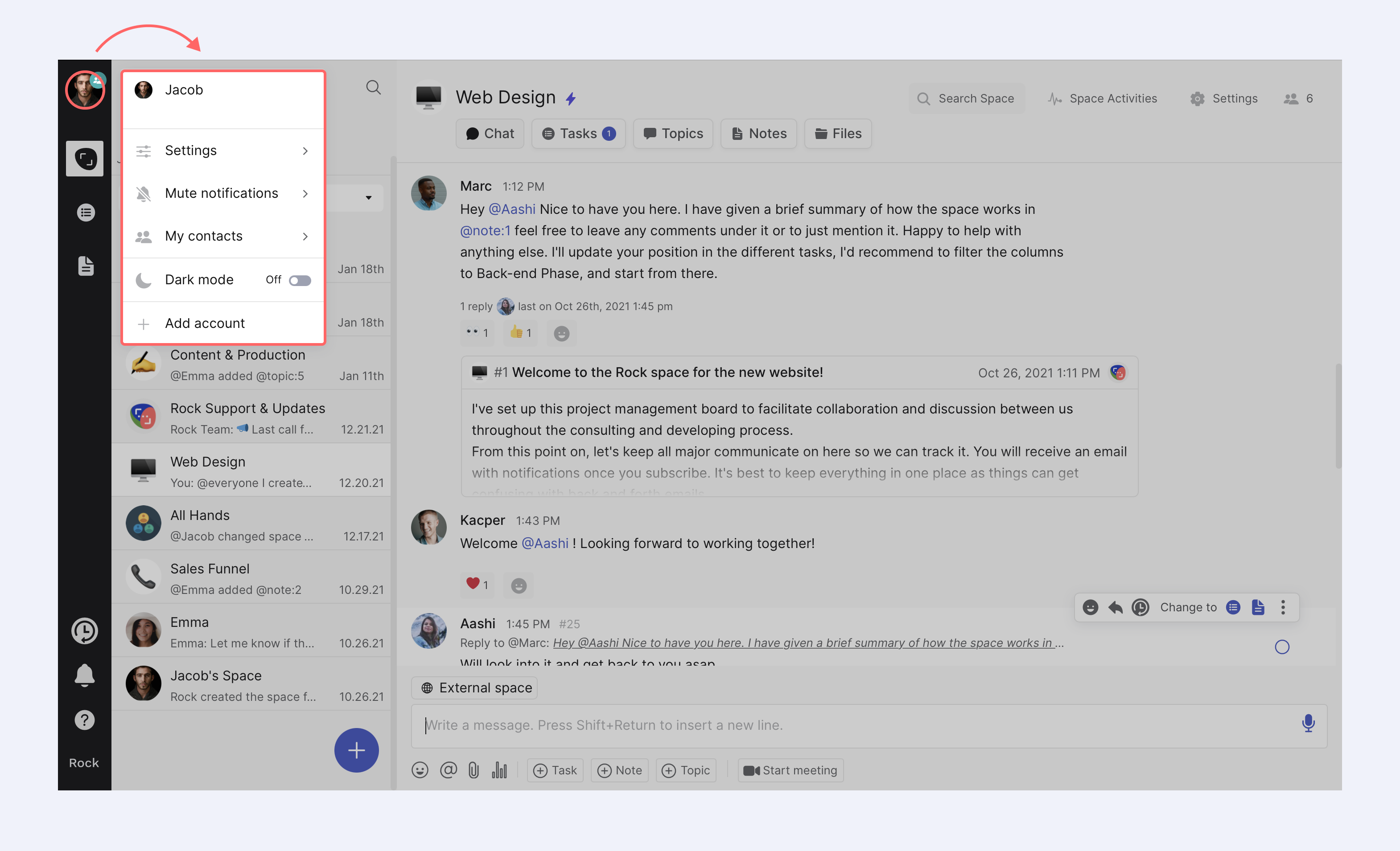 Collaboration on Rock has become even more connected with @mention in the description of tasks, notes, and topics. Seamlessly reference tasks, notes, topics, across different spaces with this powerful mentioning feature.