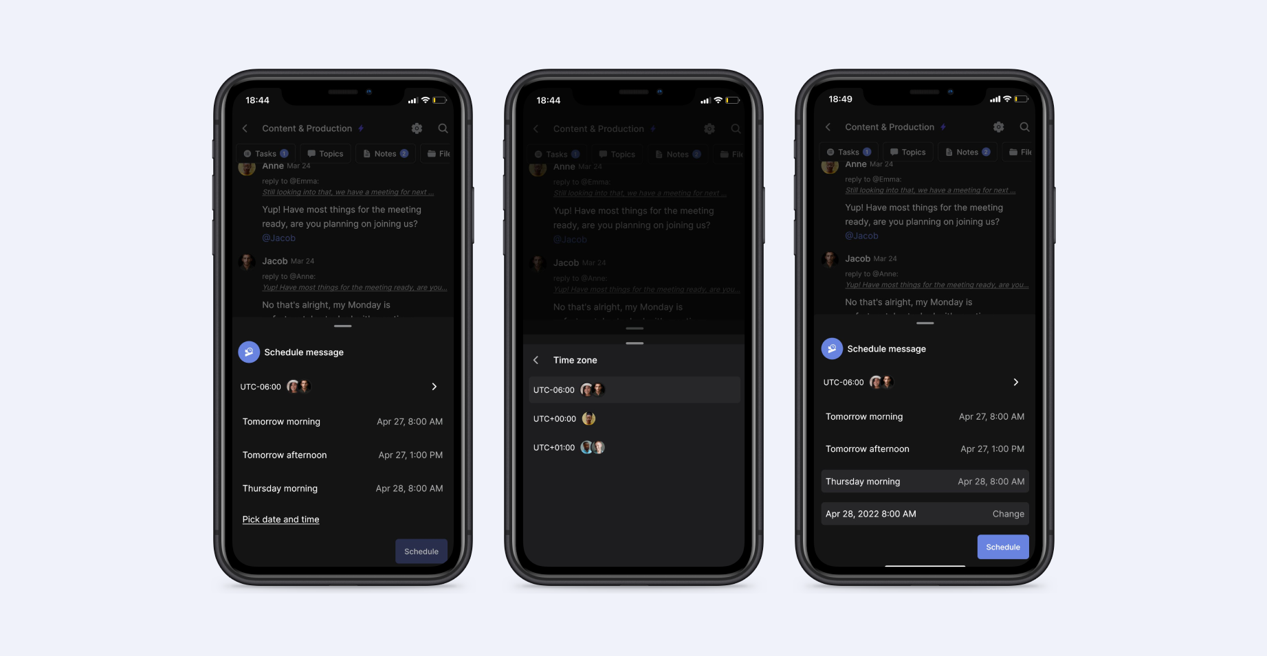 In a PRO space, you can now schedule messages or polls to be sent out when most convenient to you on mobile. This way you can send messages at a time that suits a team members' timezone better.