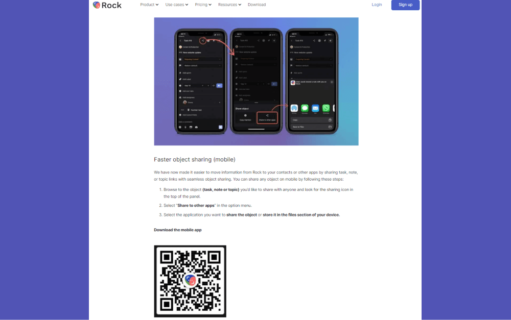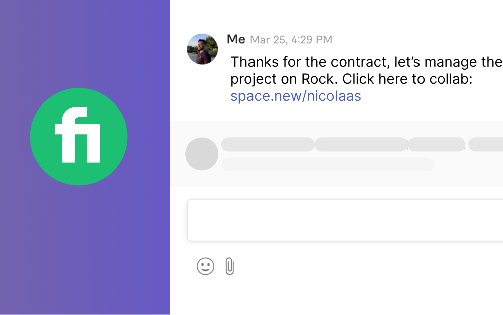 Quick Connect is especially useful if you are a freelancer working on websites like Fiverr or Upwork. By sharing your Quick Connect in a message, you can quickly move your collaboration to Rock. Collaborating on Rock gives you access to advanced features such as tasks, reminders, and time-tracking, which enable you to track your feedback, progress and time spent all in one tool.
