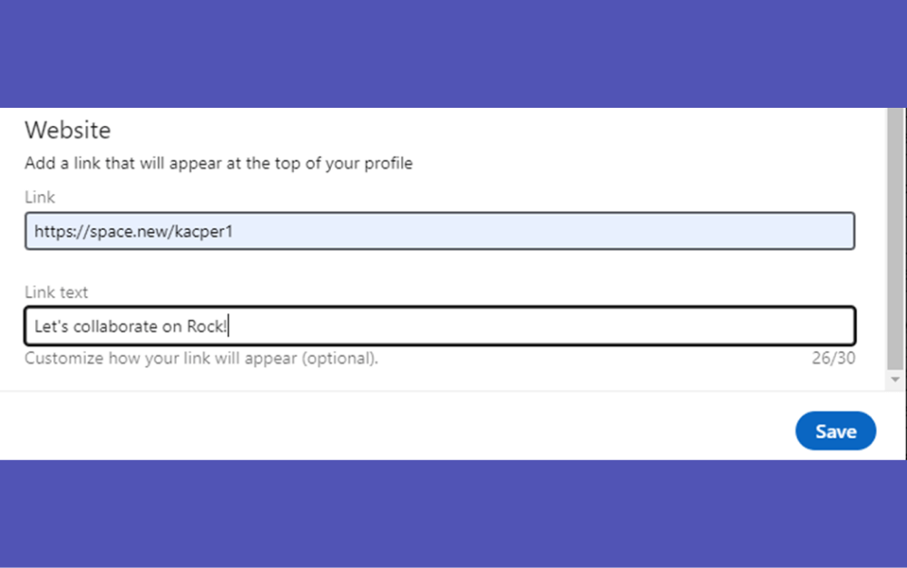 - Then, you will be given the option to create a "Link text" that will show up on your profile such as the one below.